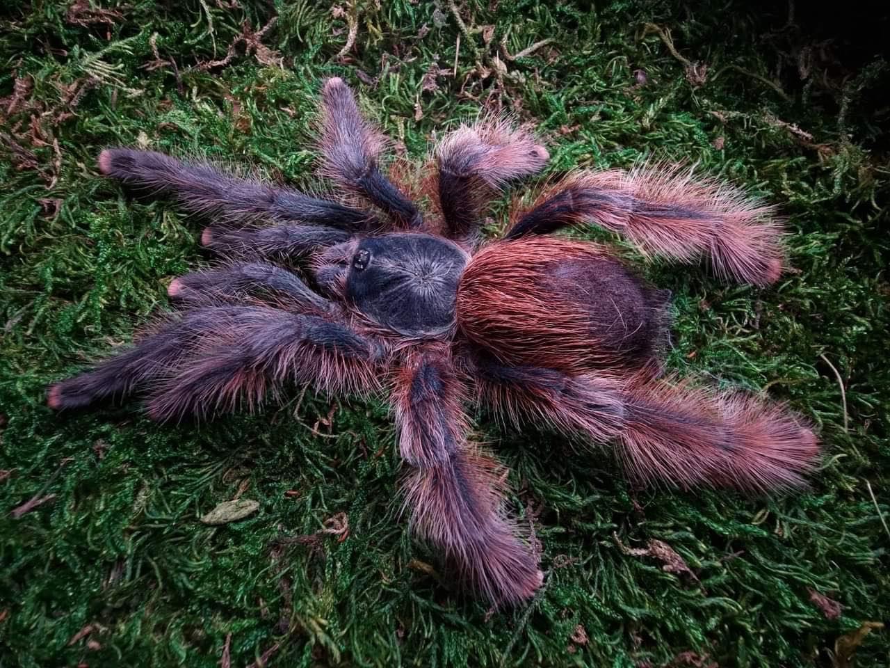 This beautiful pink toe species is known for its velvety appearance and reddish-pink abdominal hairs contrasted by dark legs and a greenish carapace. Like other Avicularia, it's generally docile and enjoys climbing and webbing in arboreal setups. A great choice for keepers who love fuzzy, colorful tarantulas with a calm personality. Limited availability—don’t miss out!