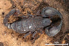 This heavily built scorpion with large claws is very calm and easy to keep. It can even be housed communally. Adult females are dark brownish-black, and males can be a bit more reddish-brown or deep brown.