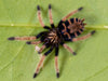 These guys are fun to raise as well because they go through a major color change as they age from sling with tiger stripes on the abdomen and no blue, to adults with bright blue, green and orange coloration.