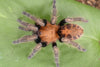 This amazing species features a gorgeous orange carapace with black and orange striping on the abdomen and white legs!