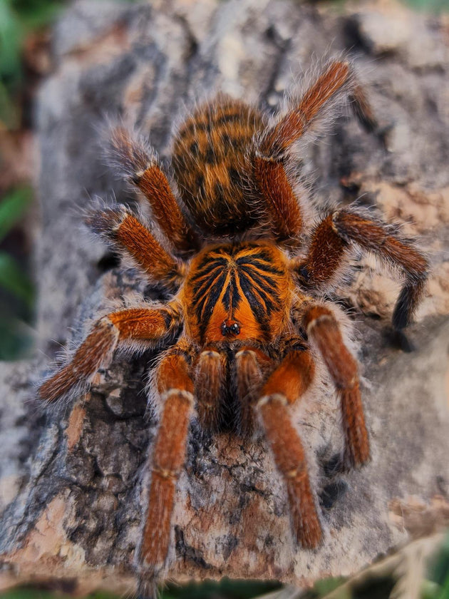 This rare Baboon species is a great addition to your collection! With a copper orange color, these guys will add the spunk you have been looking for in your African species collection. These are heavy webbers, hardy and just gorgeousin patter. Don't miss out on these!