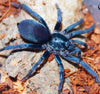 This rare species is not seen in the hobby very often at all. This dwarf species has a brilliant blue sheen and a heavy webbing behavior. They like medium humidity and will be a little more skittish. These well started slings will not last long.