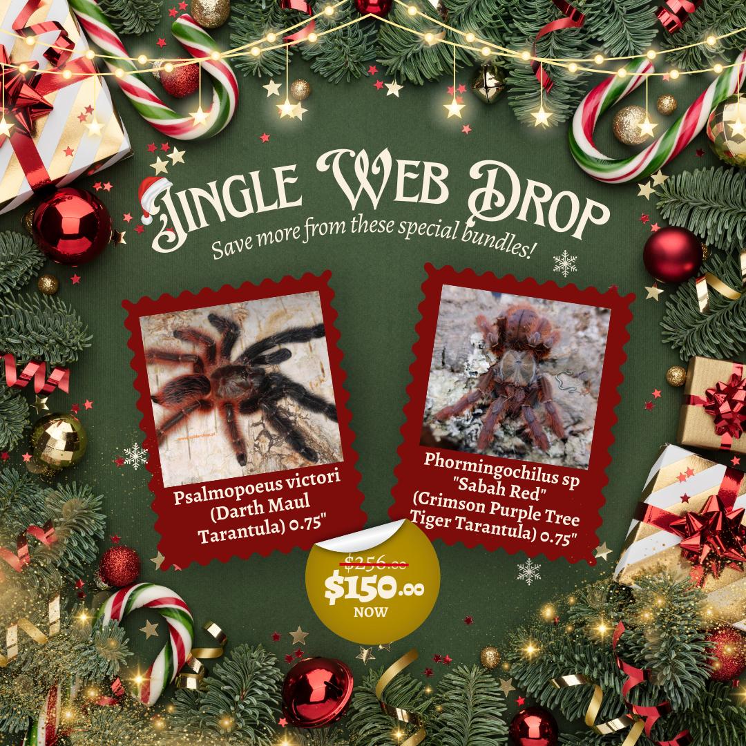 Jingle Web Drop- Phormingochilus sp "Sabah Red" (Crimson Purple Tree Tiger Tarantula) 0.75" & Psalmopoeus victori (Darth Maul Tarantula) 0.75"