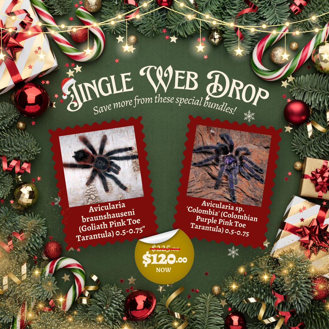 Jingle Web Drop - Avicularia sp. 'Colombia' (Colombian Purple Pink Toe Tarantula) 0.5-0.75 & Avicularia braunshauseni (Goliath Pink Toe Tarantula) 0.75"