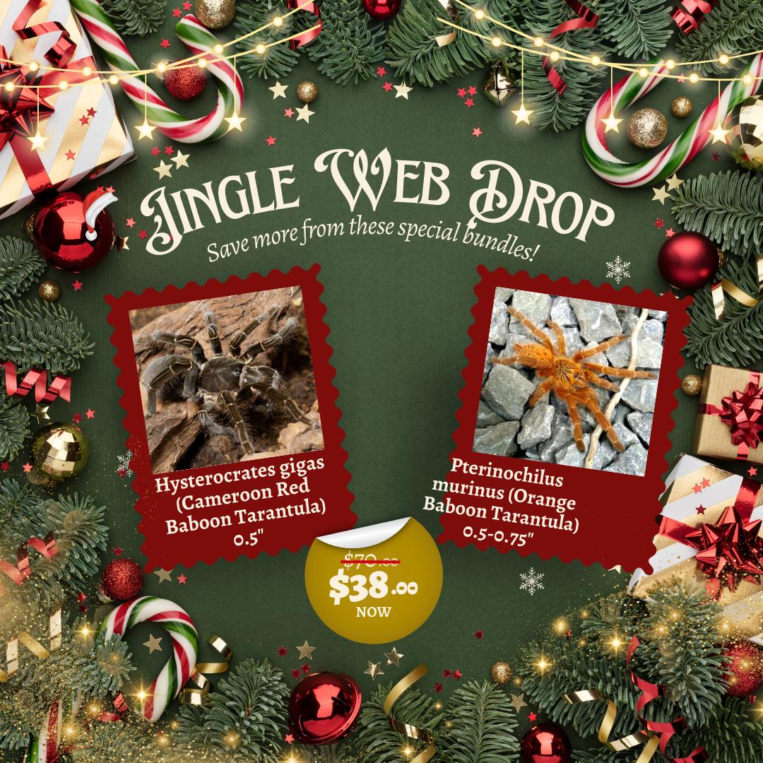 Jingle Web Drop - Pterinochilus murinus (Orange Baboon Tarantula) 0.5-0.75" & Hysterocrates gigas (Cameroon Red Baboon Tarantula) 0.5"