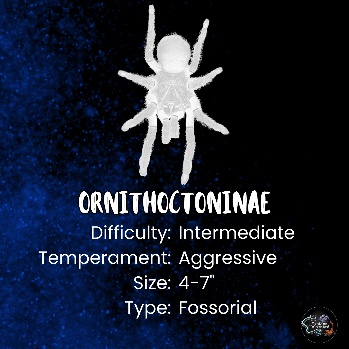This species is known for its impressive burrowing behavior and fast, defensive nature — making it best for advanced keepers. Given the right setup, it creates elaborate tunnel systems and striking webbed retreats.