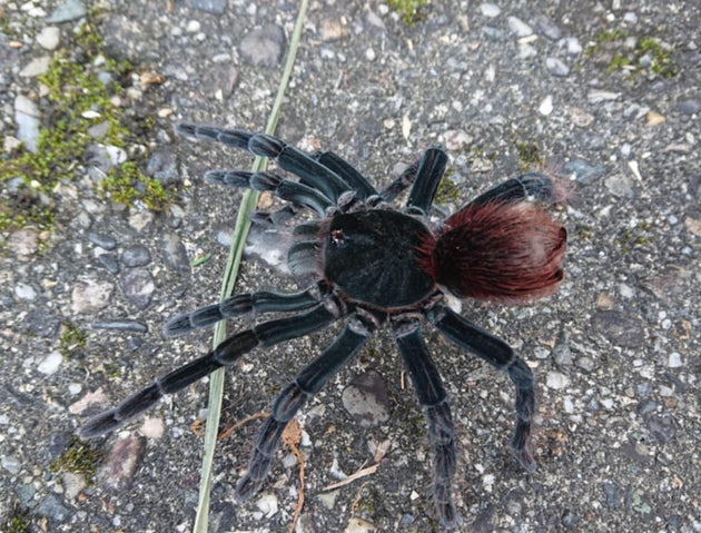 A gorgeous giant terrestrial species that reaches about 8" legspan and features a gorgeous black body and black legs with a red abdomen.
