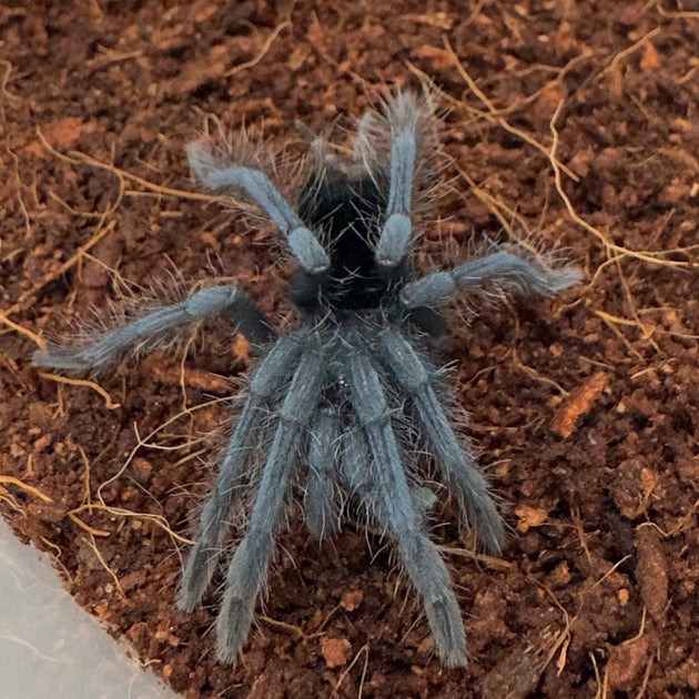 This is the only blue hue Pamphobeteus we have seen so far, which is super interesting since most species in this genus are either brown until larger or have the signature "Christamas Tree Butt" seen in many Pamphobeteus species.