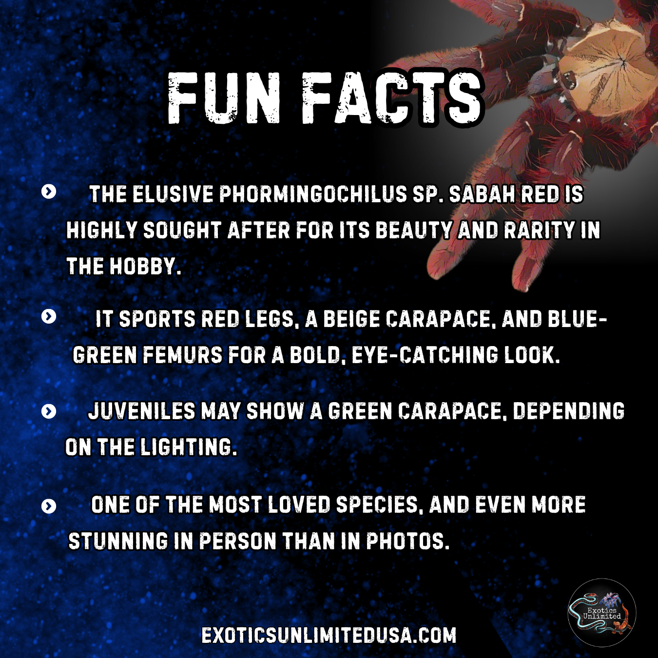 The ever elusive Phormingochilus sp. Sabah Red. This has been a cornerstone species for many hobbyists since is very limited availability in the tarantula hobby globally.