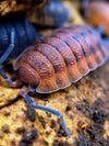This striking color form of Porcellio scaber displays bold red and black marbling, with individuals ranging from nearly solid red or orange to dark black with fiery streaks. Every isopod in a culture is unique, making them a favorite among collectors.