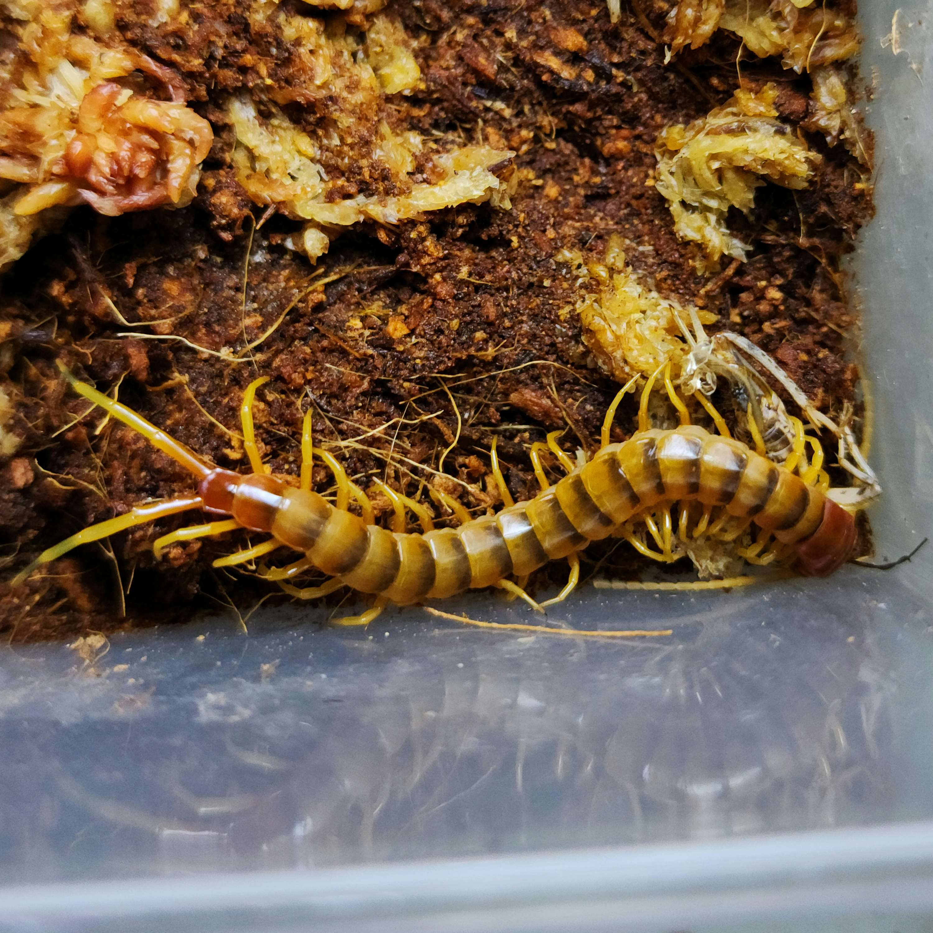 If you love giant centipedes, this is a great one. The orange morph of the Darwins centipede is an absolute stunner. Coming in at 12" for its max size and a stocky body to match, this centipede is going to impress anyone you show it off to. This is the orange morph so its body and legs are orange . Get yours today!