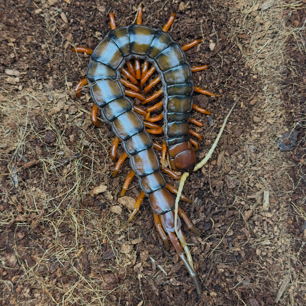 This awesome and rare centipede species has been very hard to source and is popular due to the orange legs, and white antennae on its head.